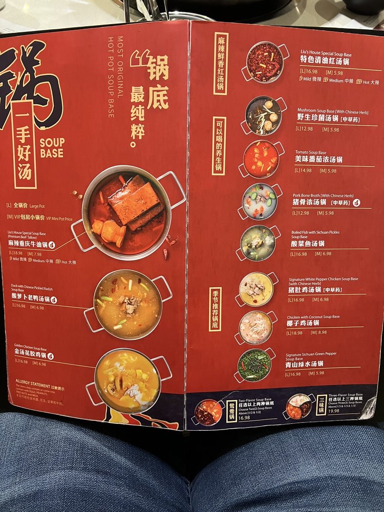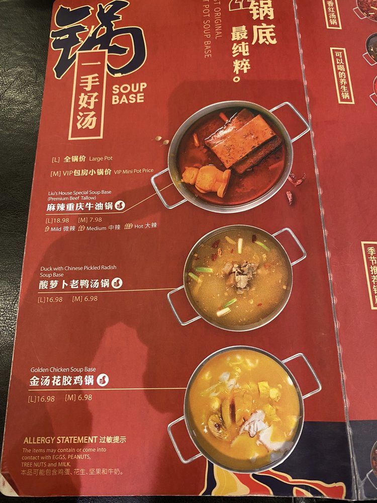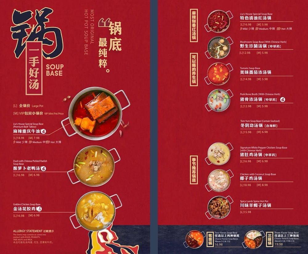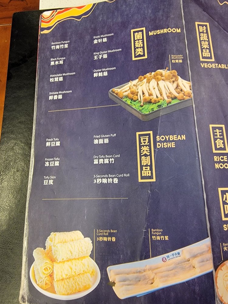 /hero's choice :/yiliu beef tripe, /beef aortas, /duck feet,/deep-fried pork, /poultry stomach,/beef tripe,/spicy beef,/coriander w/pork meatball,/handmade beef meatball,/yiliu shrimp paste/slice meet:/special brisket/vege:/kelp knot,/handmade noodle,/sweet potato noodleother beef combo:/beef tripe+/handmade beef meatballvege combo:(/chrysanthemum,/cabbage,/Flammulina velutipes,/fresh mushroom,/lettuce)/sauce:/minced garlic,/sesame oil,/sesame paste,/coriander,/green onion